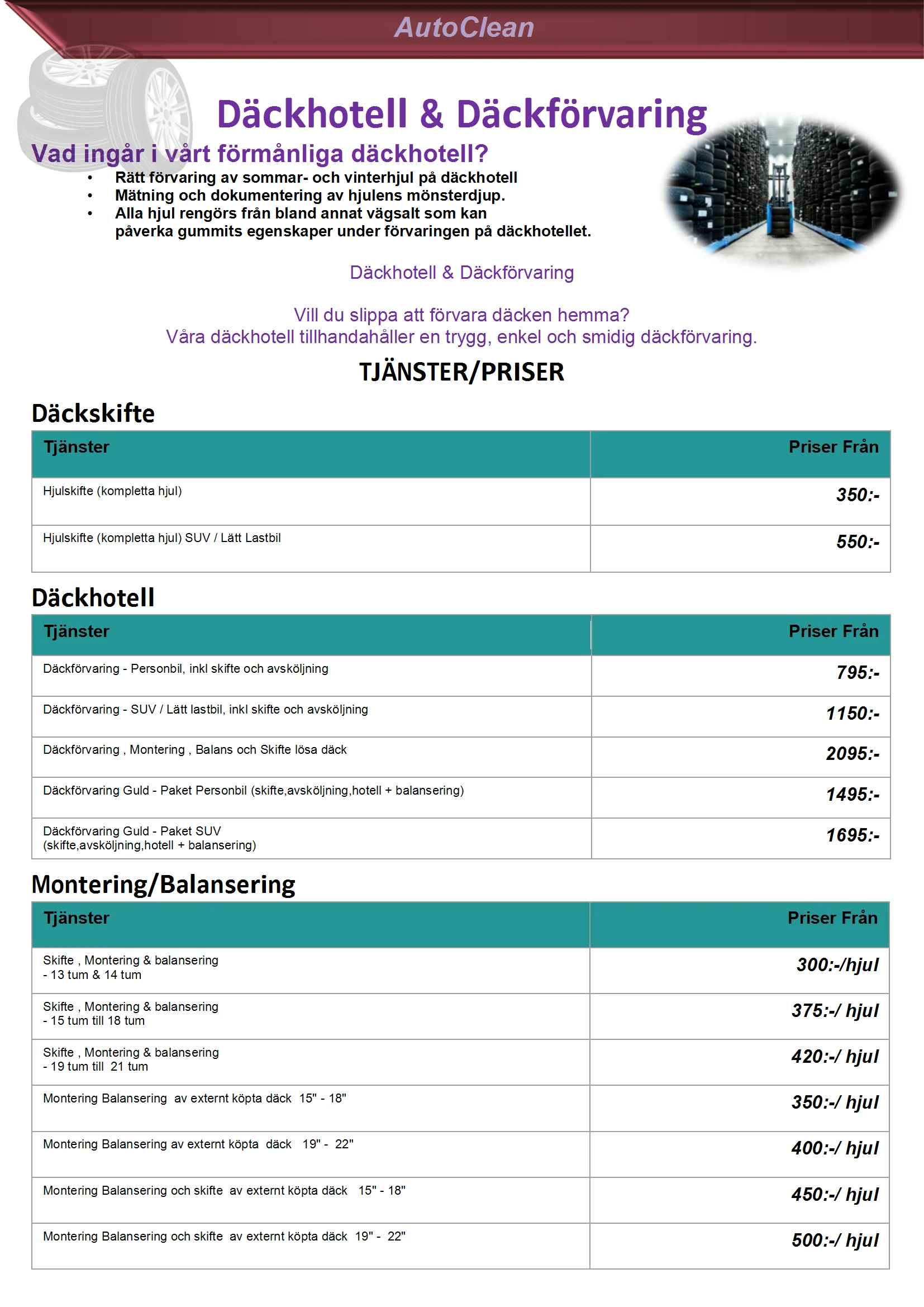 • Däckförvaring – Inkl. skifte och avsköljning.